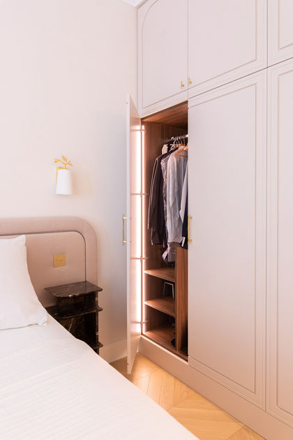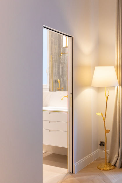 Nous avons dû nous adapter à l'ancienneté de l'appartement et de ses ouvrages parfois fragiles pour le rénover entièrement et assurer sa durabilité à long terme. Le résultat est un appartement où chaque membre de la famille dispose d'un espace unique et personnalisé, tout en conservant une harmonie élégante et contemporaine dans l'ensemble du lieu.