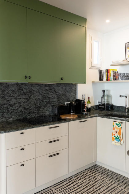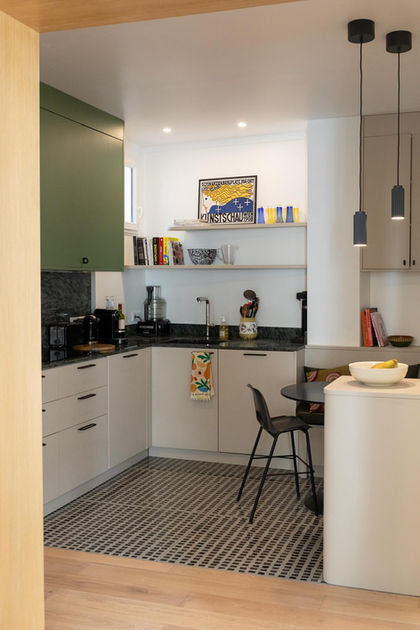 L'appartement, nécessitant une refonte complète, présentait initialement une disposition inversée : avec les espaces de nuit côté rue (plutôt bruyante) et les espaces de jour côté cour (plus calme).