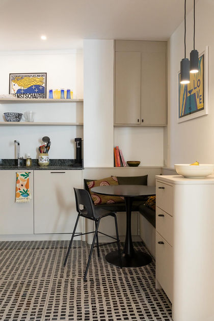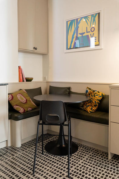 Chaque pièce de l'appartement a été conçue avec une couleur distincte et marquée, apportant une touche unique à l'ensemble de l'espace. Cette approche colorée et dynamique reflète parfaitement la personnalité de la famille et leur mode de vie.