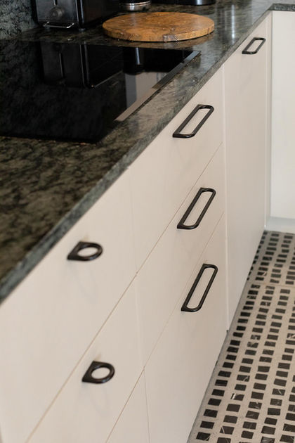 Avec quatre chambres à intégrer, nous avons également prévu deux salles de bain, de nombreux rangements sur mesure et une grande bibliothèque pour accueillir la vaste collection de livres des clients.