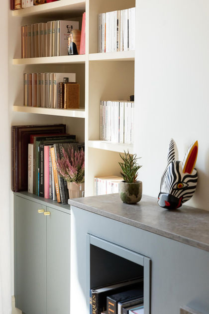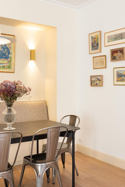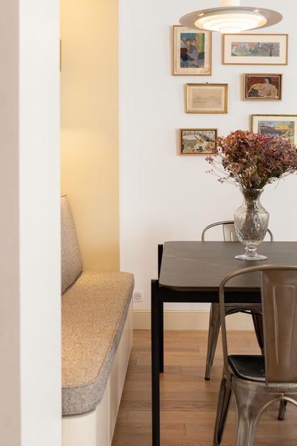 Pour améliorer leur qualité de vie, nous avons réorganisé l'appartement en plaçant les chambres côté cour (avec un équilibre de dimension par pièce pour chaque enfant), et les espaces de jour côté rue, plus lumineux.